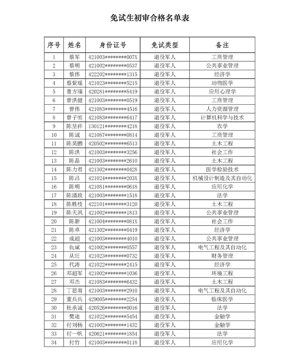 【摘要】根据《湖北省教育考试院关于做好2021年成人高考报名工作的通知》以及文件要求,经考生申请、长江大学审核,小编现将2021年 长江大学成人高考 专升本免试考生初审合格名单公示如下: 以上就是2021年长江大学成人高考专升本的...