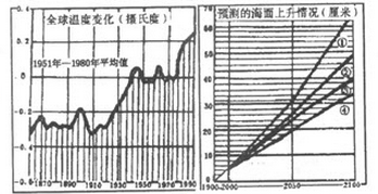 (3)把图中预测海平面上升情况的序号,填入下表空格中,与能源利用状况相适应。