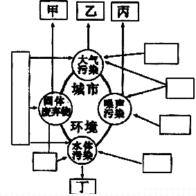 (2)甲:合理堆放、深埋和进行综合利用 乙:回收利用,逐步利用新能源代替化石燃料 丙:控制噪声源,植树造林 丁:综合利用、处理,改善下水道,加强监测