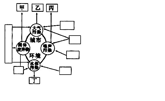 (2)甲:合理堆放、深埋和进行综合利用 乙:回收利用,逐步利用新能源代替化石燃料 丙:控制噪声源,植树造林 丁:综合利用、处理,改善下水道,加强监测