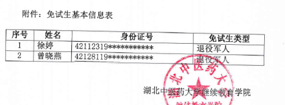 【摘要】根据《湖北省2021年成人高考考生报名须知》文件精神,湖北中医药大学拟对享受2021年成人高考免试生政策的徐婷、曾晓燕等2名考生信息进行公示。欢迎社会及考生广泛监督。下面小编将 湖北...