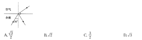 2.如图,一束光线自介质射向空气,在分界面处发生反射和折射。当入射角为30°时,反射光线和折射光线恰好垂直。则该介质的折射率为( )