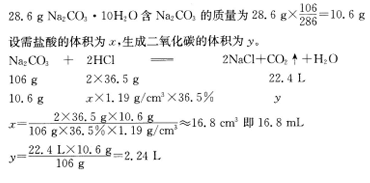 31.28.6g Na2CO3·10H2O与质量分数为36.5%(密度1.19g/cm3)的盐酸完全反应,消耗这种盐酸溶液多少毫升?在标准状况下,反应生成多少升二氧化碳?