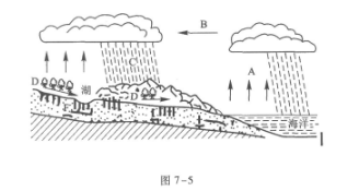 44.读图7-5“自然界水循环过程示意图”,分析回答: