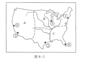 34.图8-2为美国本土工业分布图,关于该图的正确叙述( )