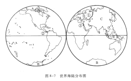 45.读世界海陆分布图(图8-7),完成下列要求: