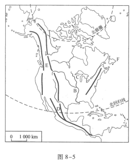 (2)从图8-7中可以看出,跨经度最广的大洲是字母____代表的____洲。完全位于北半球的大洋名称是字母____所代表的____洋。