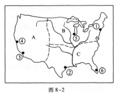 35.图8—2为美国本土工业分布图,关于该图的正确叙述( )