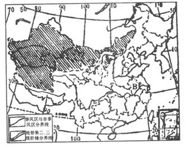(1)按图例画出我国季风区与非季风区界线和地势第二、三级阶梯分界线。