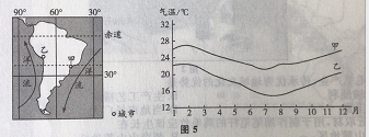图5示意甲、乙两个海滨城市的位置及其气温变化。据此完成30~32题。