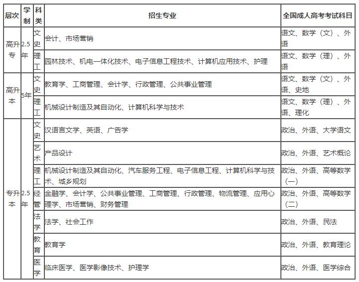 2020年江汉大学成人高校招生专业及成人高考考试科目